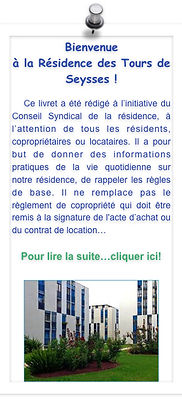 Afin d'accueillir au mieux les nouveaux résidents, propriétaires, occupants ou locataires, notre conseil syndical a édité un livret d'accueil dans lequel sont réunies les informations principales du règlement de copropriété, à consulter sans modération ...